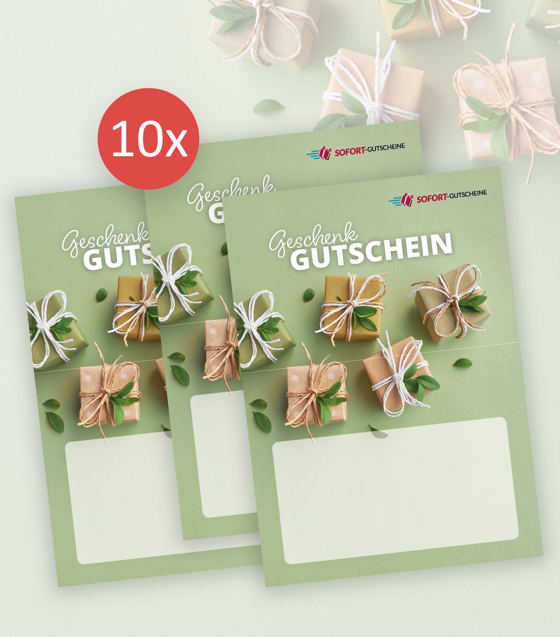 - 10x Gutscheinkarten inkl. SOFORT-Gutschein QR-Code/Gutscheindaten